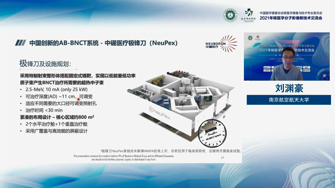 日前,“2021年核醫(yī)學分子影像新技術(shù)交流會”在線上召開。核醫(yī)學領(lǐng)域知名專家會同GE醫(yī)療、西門子、飛利浦、聯(lián)影、中硼醫(yī)療等國內(nèi)外醫(yī)療企業(yè)聚首,共饗醫(yī)學盛宴。中硼醫(yī)療創(chuàng)始人、首席科學家兼CEO劉淵豪教授和北京協(xié)和醫(yī)院核醫(yī)學科主任、中國醫(yī)學裝備協(xié)會核醫(yī)學裝備與技術(shù)專業(yè)委員會副主任委員、博士生導師霍力教授作為大會特邀講者出席本次會議,分別圍繞國內(nèi)外BNCT的發(fā)展現(xiàn)況和核醫(yī)學在BNCT中的角色做了重磅匯報,引發(fā)大會熱烈討論。