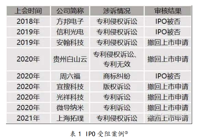 近些年,多家企業(yè)在 IPO 上市之前遭遇專利侵權(quán)訴訟的案例屢見(jiàn)不鮮,漢王科技、熵基科技、極米科技等,根據(jù)國(guó)內(nèi)科創(chuàng)企業(yè)服務(wù)平臺(tái)六棱鏡的IPO庫(kù)數(shù)據(jù)統(tǒng)計(jì)情況來(lái)看,截至 2021 年 11 月 15 日,共有 321 家 IPO 企業(yè)被問(wèn)詢到“知識(shí)產(chǎn)權(quán)是否自主可控”的問(wèn)題共計(jì) 1274 個(gè),共有 321 家企業(yè)被問(wèn)詢到“知識(shí)產(chǎn)權(quán)是否存在潛在風(fēng)險(xiǎn)”的問(wèn)題共計(jì) 993 個(gè),以及有 259 家企業(yè)被問(wèn)詢到相關(guān)“研發(fā)體系是否合理、穩(wěn)定”等問(wèn)題共 603 個(gè)k,又如表 1 所示。一方面要求企業(yè)盡早準(zhǔn)備FTO,未雨綢繆,有的放矢,通過(guò)專業(yè)的知識(shí)產(chǎn)權(quán)團(tuán)隊(duì)進(jìn)行 FTO 分析,以避免不必要的專利侵權(quán)。同時(shí),企業(yè)也需要構(gòu)筑自己的專利壁壘,對(duì)于自主的核心產(chǎn)品積極進(jìn)行專利保護(hù),避免被他人抄襲而無(wú)可奈何。