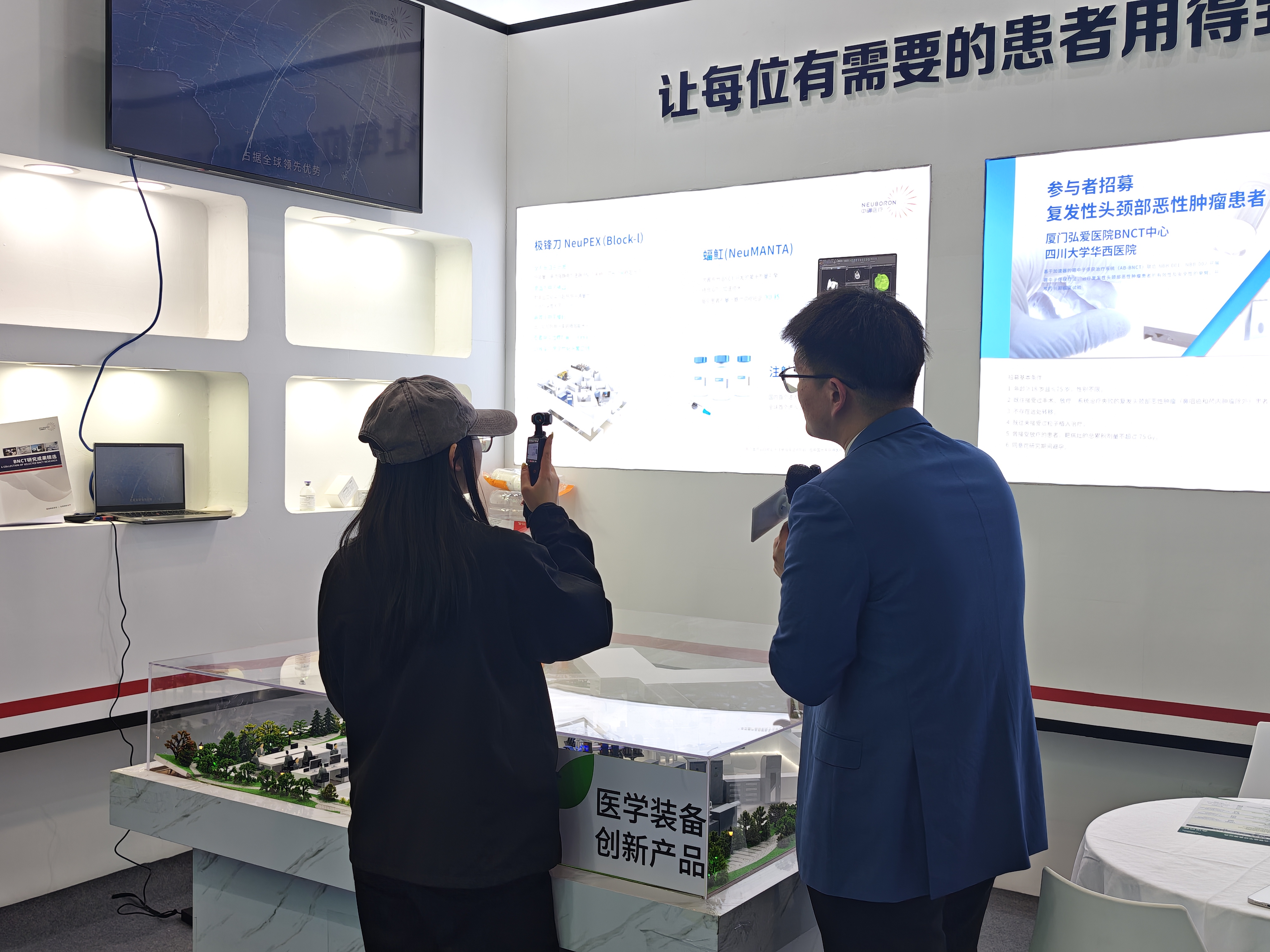 展品涵蓋加速器BNCT治療裝置-極鋒刀NeuPEX系統(tǒng)、診療一體化含硼藥物(治療藥物BPA及伴隨診斷藥物18F-BPA)、BNCT專用治療計(jì)劃軟件-蝠魟NeuMANTA系統(tǒng)等核心產(chǎn)品,為醫(yī)院建設(shè)BNCT治療中心提供從設(shè)備、藥物、軟件、金融方案、人才培訓(xùn)、科研合作、維保到全生命周期服務(wù)的整體高質(zhì)量支撐,實(shí)現(xiàn)了一站式、無憂式的整體交付。